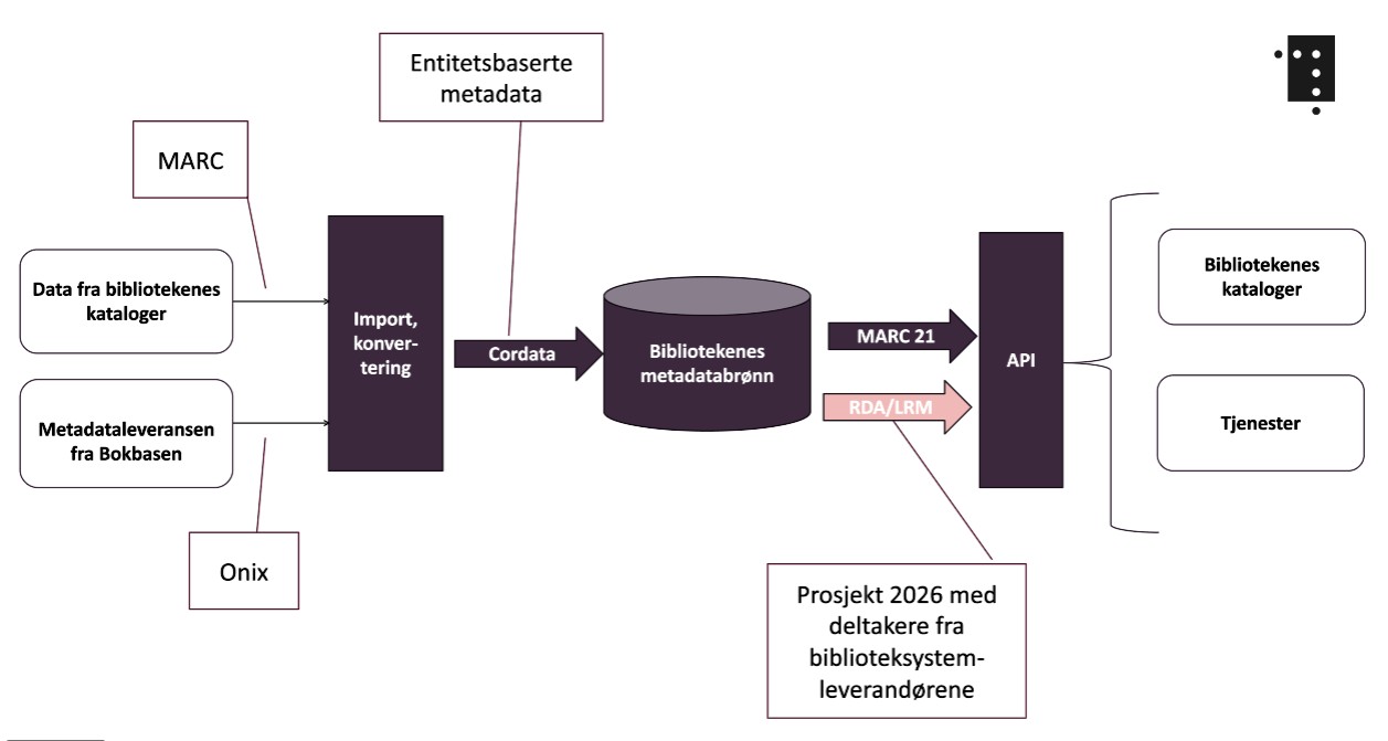 Et viktig mål i bibliotekstrategien har vært overgangen fra MARC-format til åpne, lenkede data – realisert som entitetsbaserte metadata. Metadatabrønnen gjør denne overgangen mulig i praksis.
